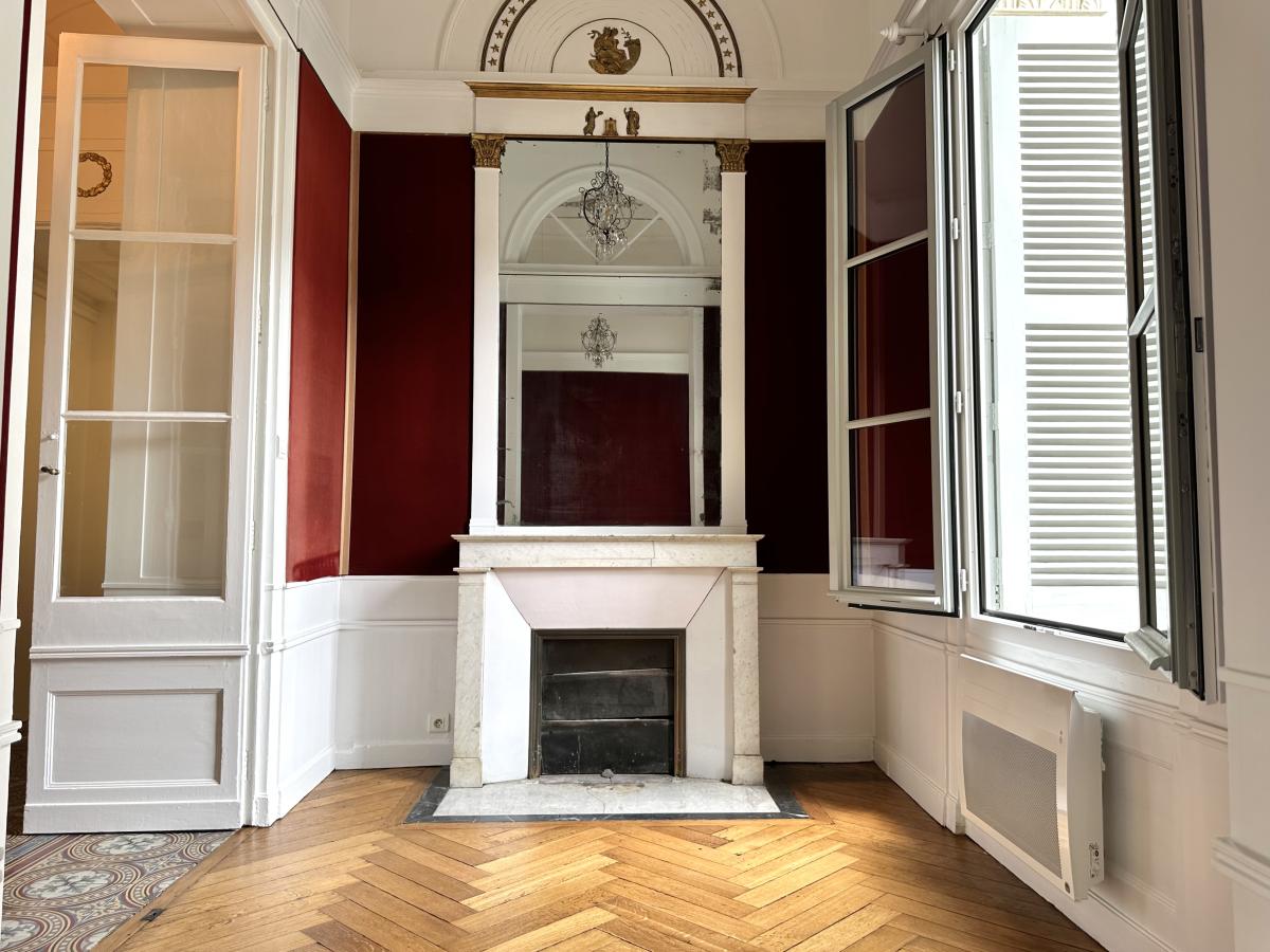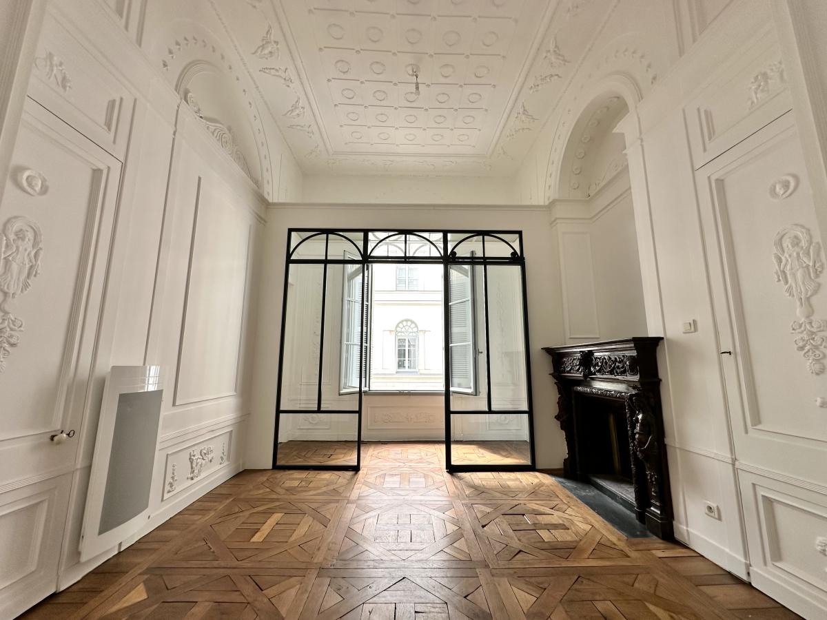 Hauteur sous plafond, moulures, dorures, parquet ancien… Cette rénovation soignée a su préserver tout le cachet d’origine de cet appartement unique.