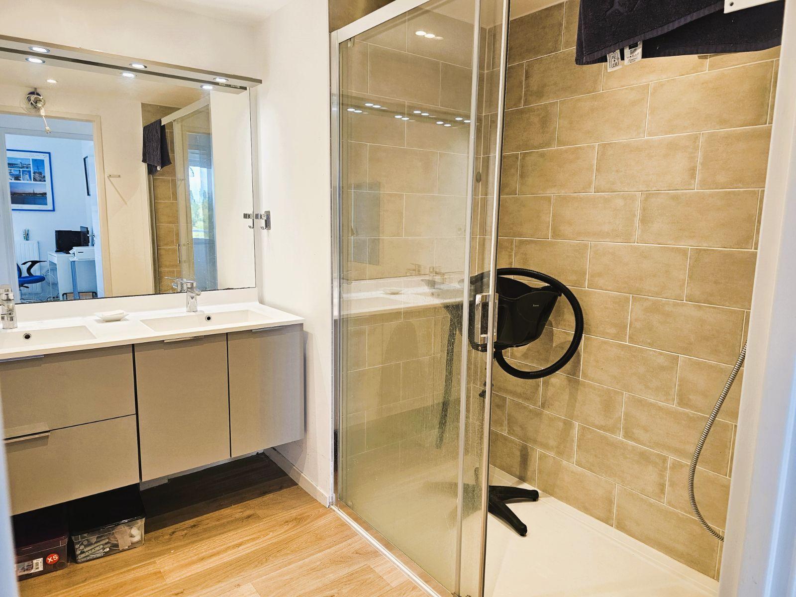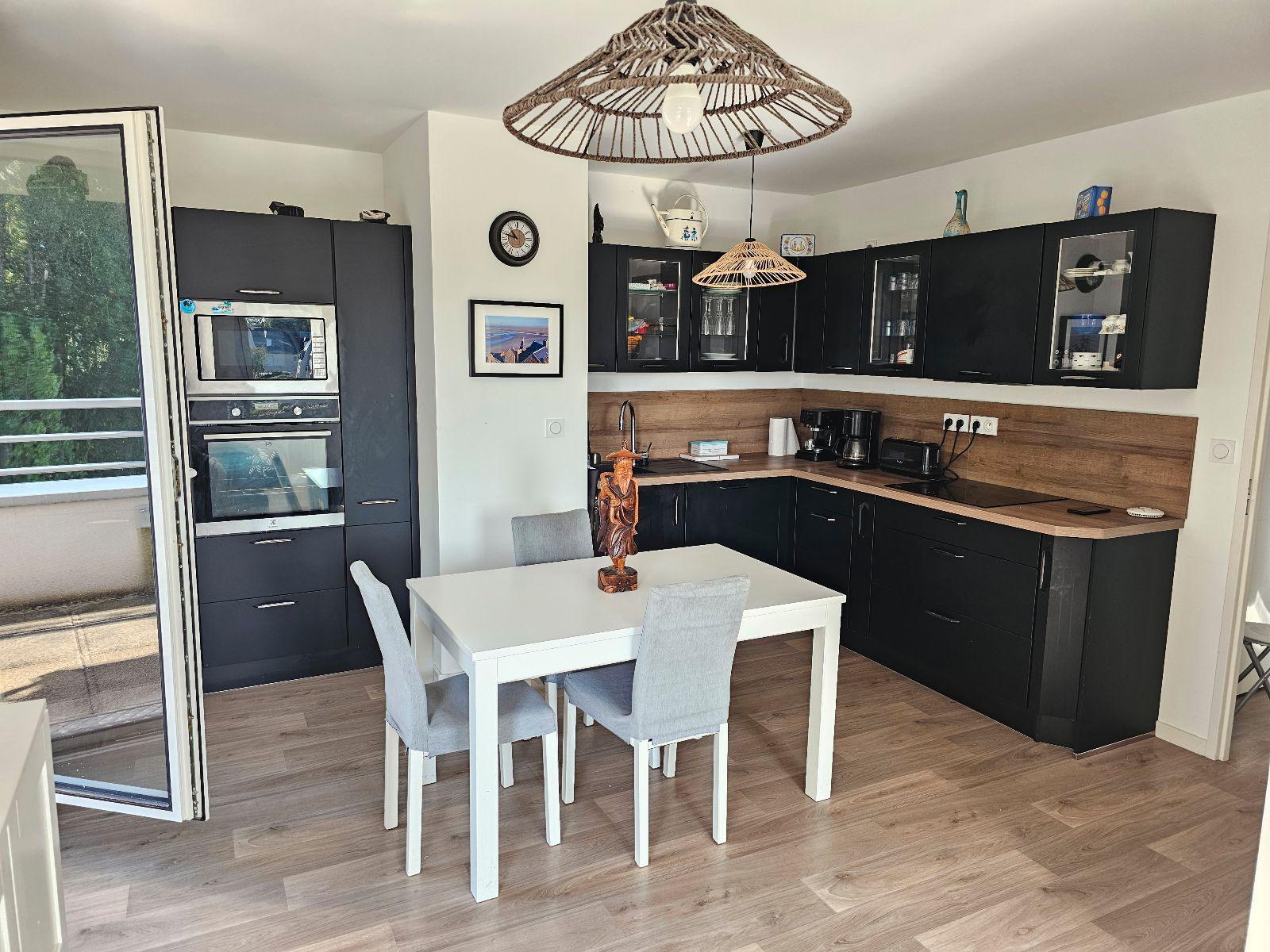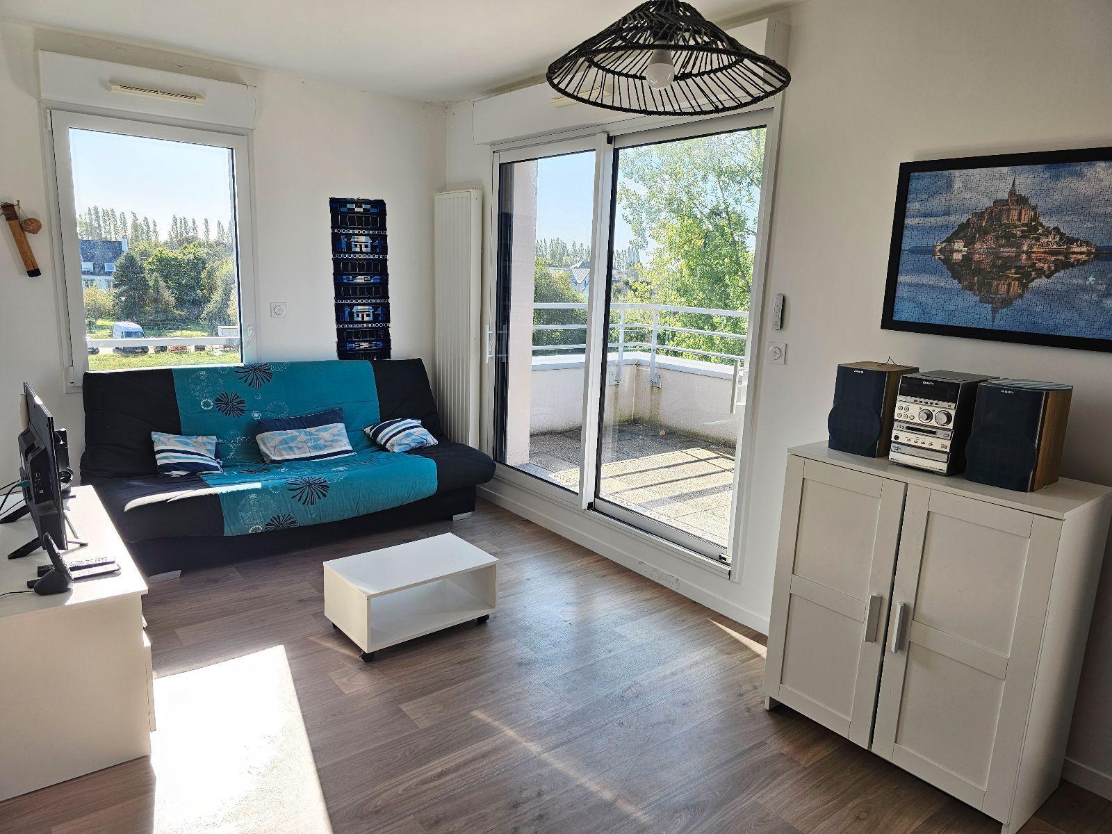 Cancale, dans résidence de 2018, appartement lumineux de type 3 situé au 3e étage avec ascenseur, comprenant : entrée, cuisine aménagée et équipée donnant sur terrasse bien exposée, 2 chambres, salle d’eau, wc, placard.