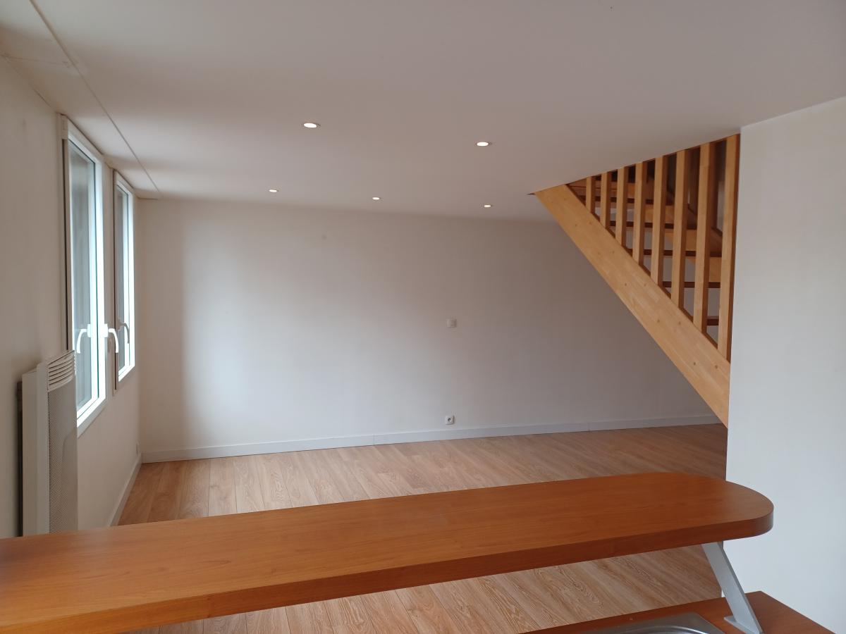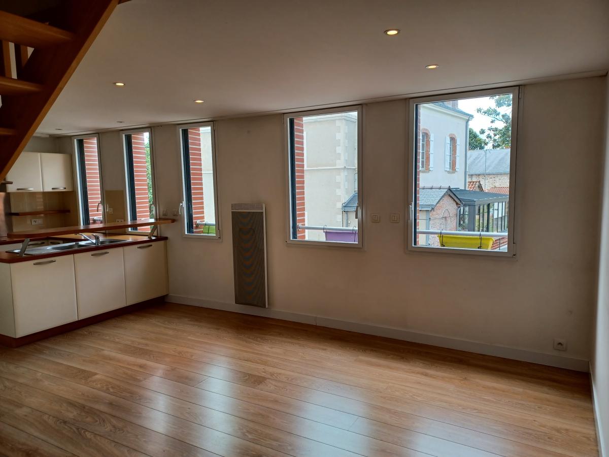 A proximité immédiate de la gare de CLISSON et des commerces, appartement dans petite copropriété de 5 lots. Au 1er étage (sans ascenseur), avec vue dégagée, appartement de 65,33m² habitables comprenant une grande entrée avec placard, une pièce de vie de 39,72m² avec une cuisine ouverte aménagée et équipée (plaque de cuisson et hotte), une salle d’eau avec wc puis au niveau supérieur: deux chambres sous pente avec rangement. Pas de stationnement privatif mais possibilité de demander un macaron en mairie, cave individuelle pour rangement (au 1er étage). Chauffage électrique, ouvertures en aluminium avec volets roulants électriques. Pas de charges de copropriété.