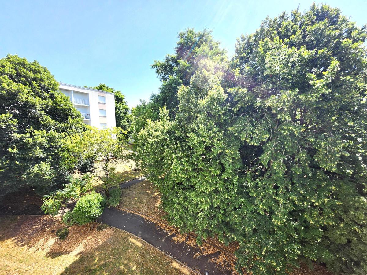 Saint Herblain Bourg – Au cœur du parc verdoyant des Résidences du Bourg face à la mairie, ce T3 exposé Sud et Est au 3e étage sans ascenseur d’un immeuble années 70 entièrement ravalé et isolé par l’extérieur comprend :