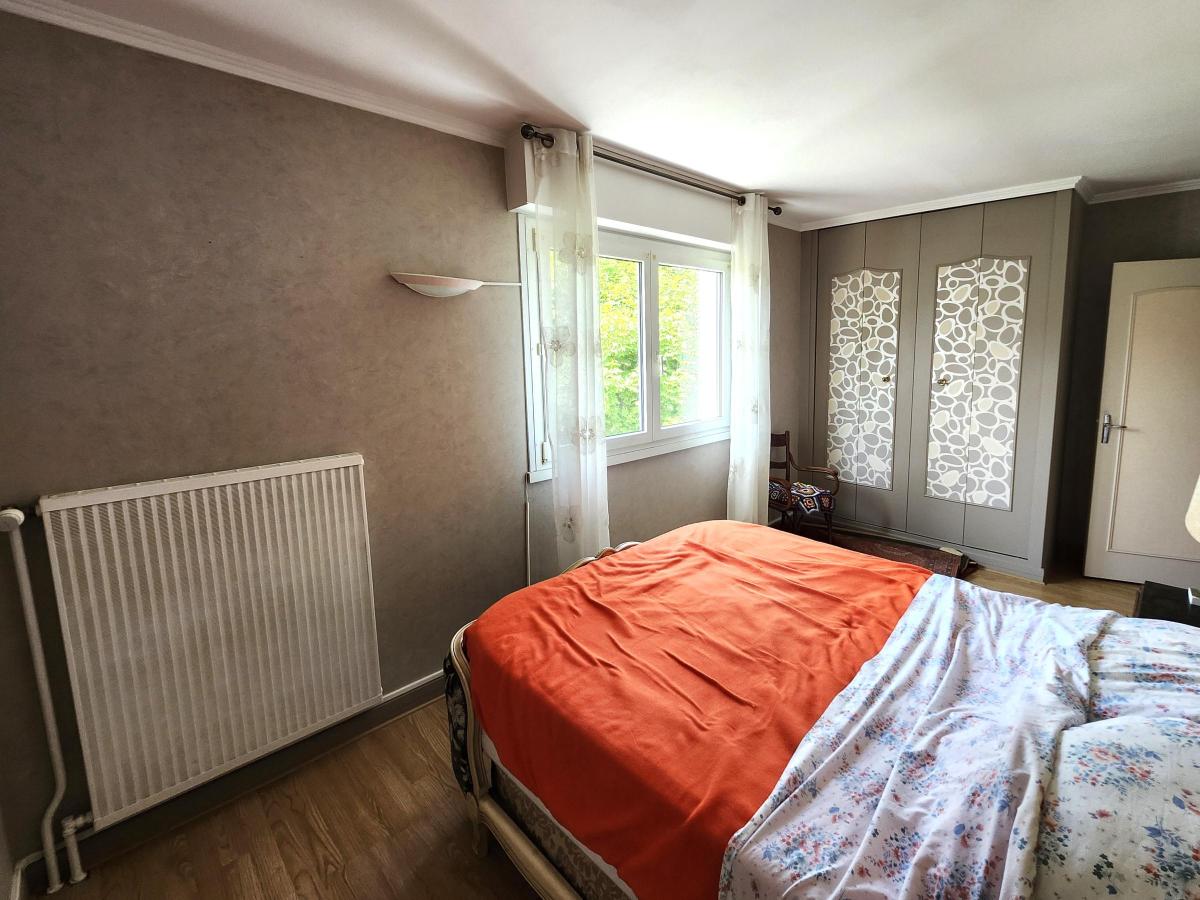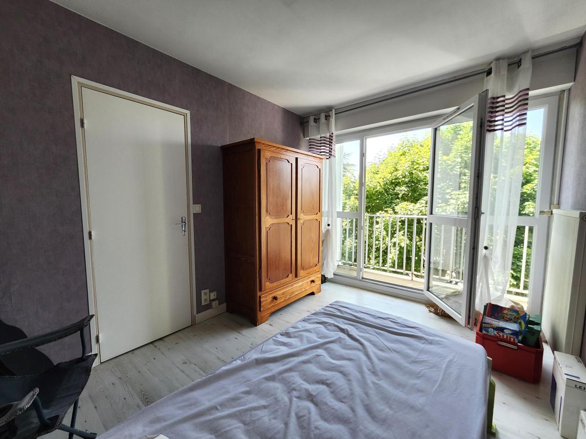 Une entrée avec placard, une cuisine toute aménagée et équipée, un séjour avec un large balcon donnant sur le parc boisé et exposé est, 2 chambres dont une grande avec placard et une avec son propre balcon exposé sud, et enfin une salle d’eau avec WC séparés.