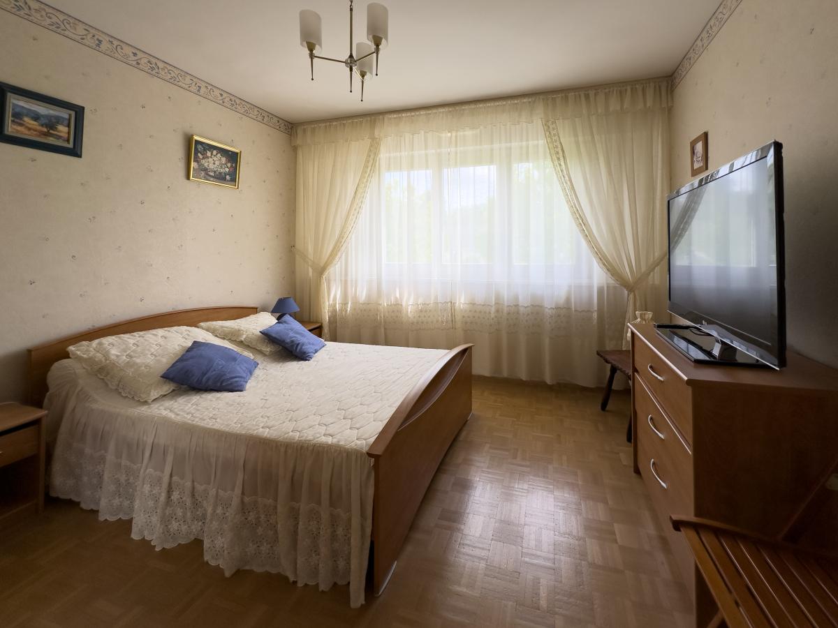 Entrée sur parquet, pièce de vie, cuisine équipée donnant sur loggia, dégagement avec placards, trois chambres sur parquet, salle de bains débarras (possibilité dressing), WC séparé, cellier.