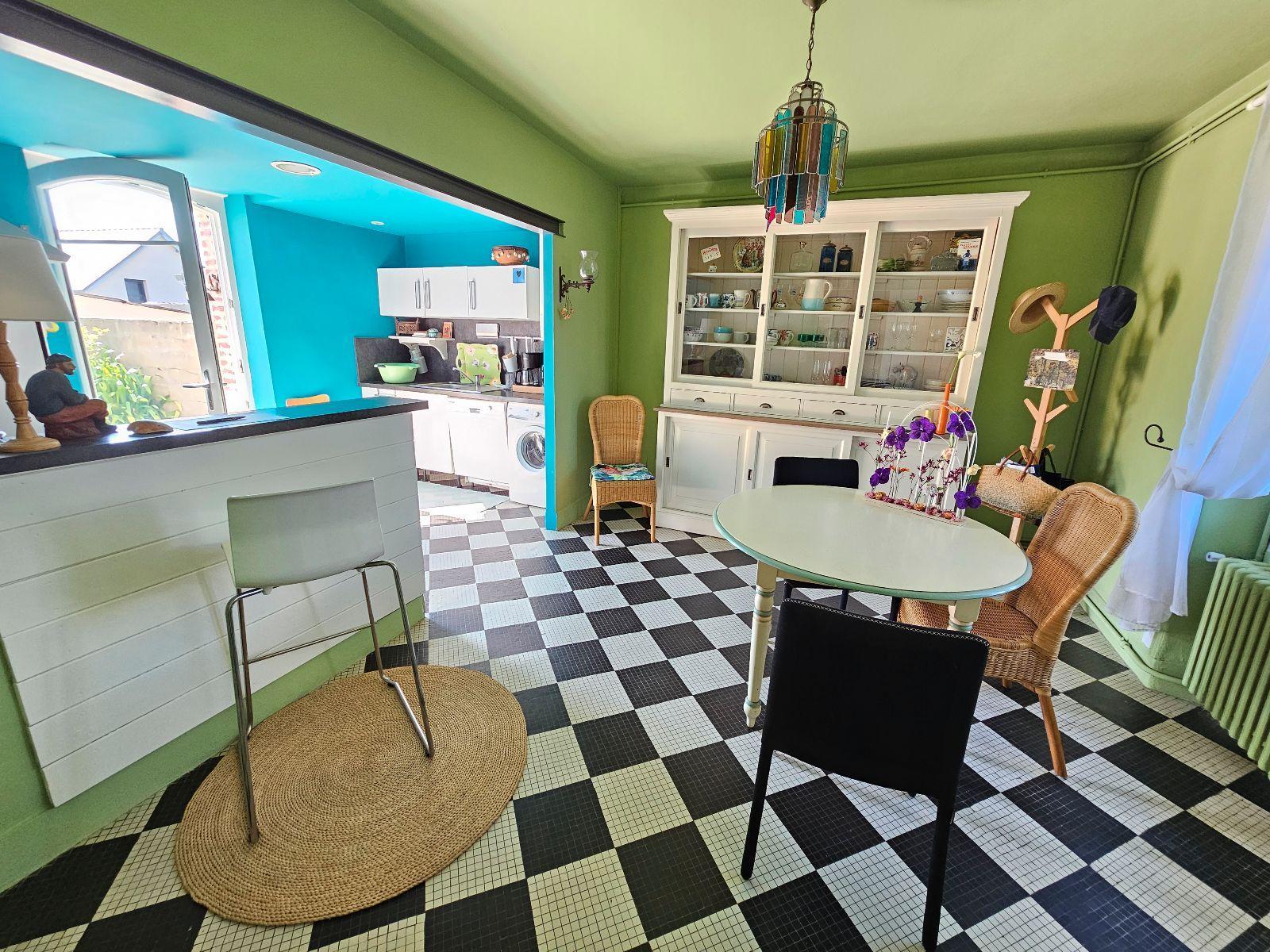 Maison de charme, située à 800m d’une plage et à 1.5km de nombreux commerces, comprenant : une entrée, cuisine aménagée et équipée ouverte sur séjour et donnant sur grande terrasse exposée sud ouest, un salon avec poêle à bois, wc sous escalier, et à l’étage : palier, 3 chambres, un bureau, une salle d’eau. Garage attenant. Fort potentiel : les combles du deuxième étage sont aménageables (50m2 au sol), et terrain permettant une construction. Beau jardin clos et arboré, recevant également un double carport et un abri bois. Le tout sur terrain de 865m2.