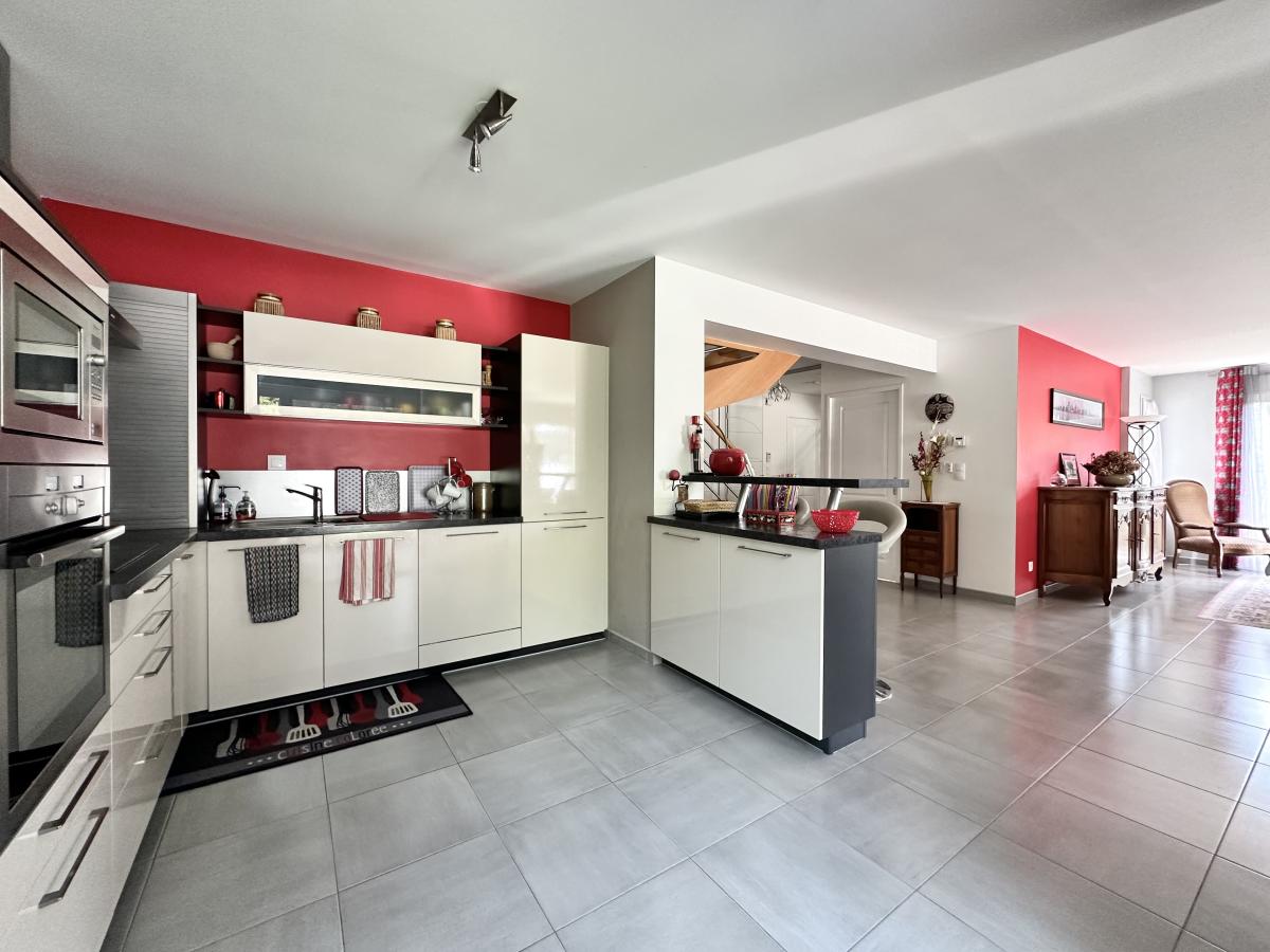 Au rez-de-chaussée : Entrée avec placards, salon-séjour avec cuisine ouverte aménagée équipée, suite parentale comprenant une chambre avec salle de bain attenante, bureau, arrière-cuisine/buanderie et WC séparés.