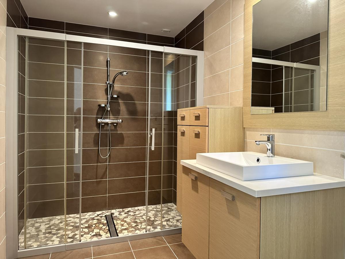 Au rez-de-chaussée : une vaste pièce de vie de près de 55 m² avec cuisine ouverte aménagée et équipée, lumineuse grâce à sa triple exposition, une suite parentale avec salle d’eau privative, une lingerie/chaufferie, un dégagement et des WC séparés.