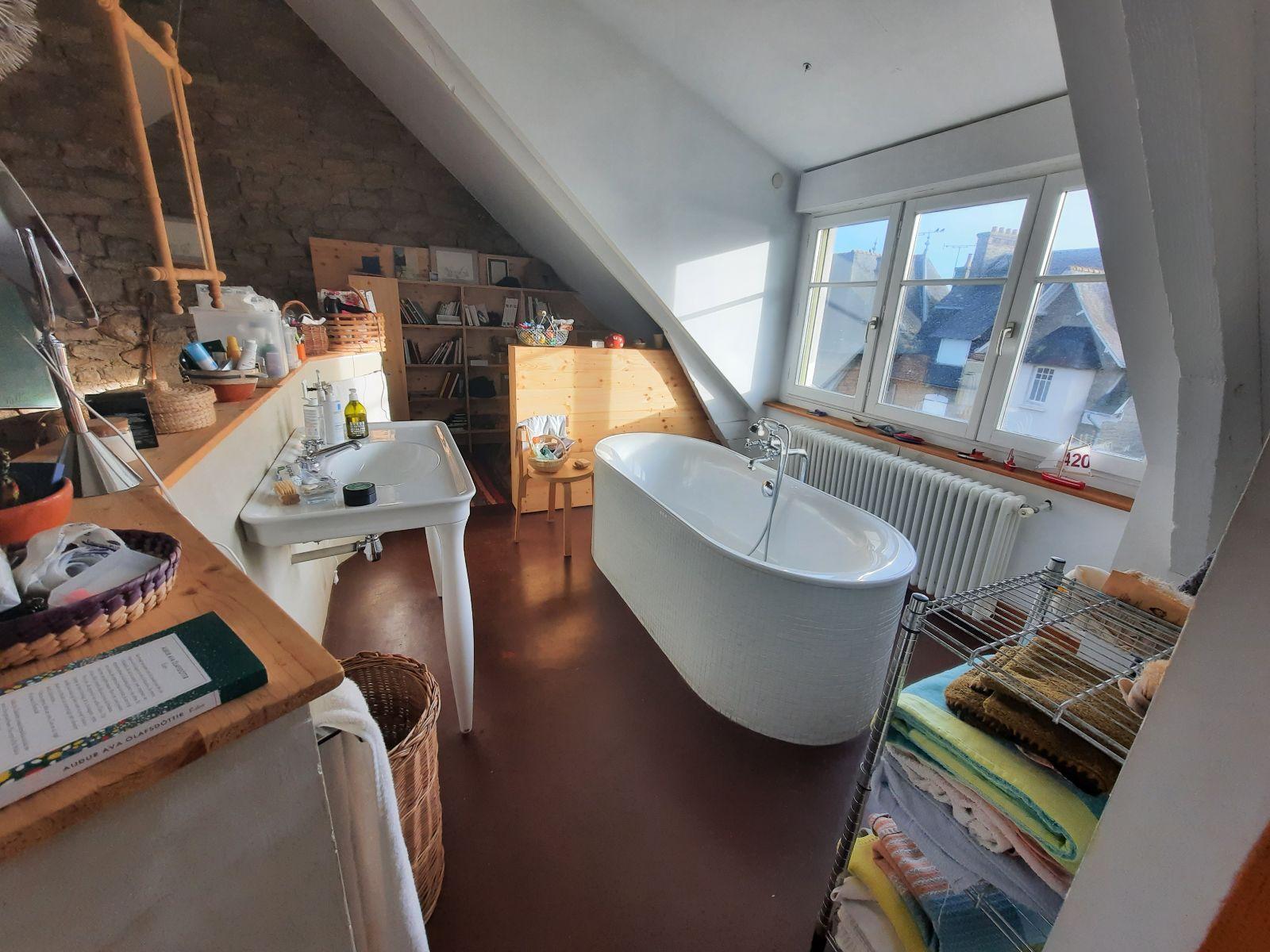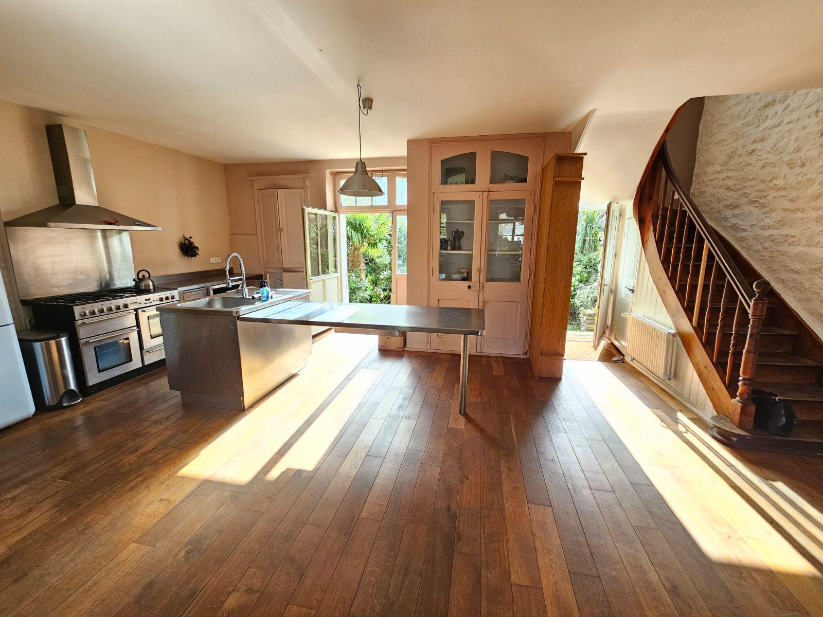 Au coeur de Cancale, à cinq minutes à pied des plages, des promenades du GR 34 et des commerces du bourg, maison coup de coeur en pierre, avec au rez-de-chaussée : entrée, cuisine ouverte (donnant sur terrasse) ouverte sur grande pièce de vie avec cheminée, au premier : palier, trois chambres, wc, salle d’eau, et au second : grande chambre avec salle de bains et wc, aperçu mer. Sous-sol avec buanderie- Terrasse et jardin sur arrière. le tout sur parcelle de 189m2.