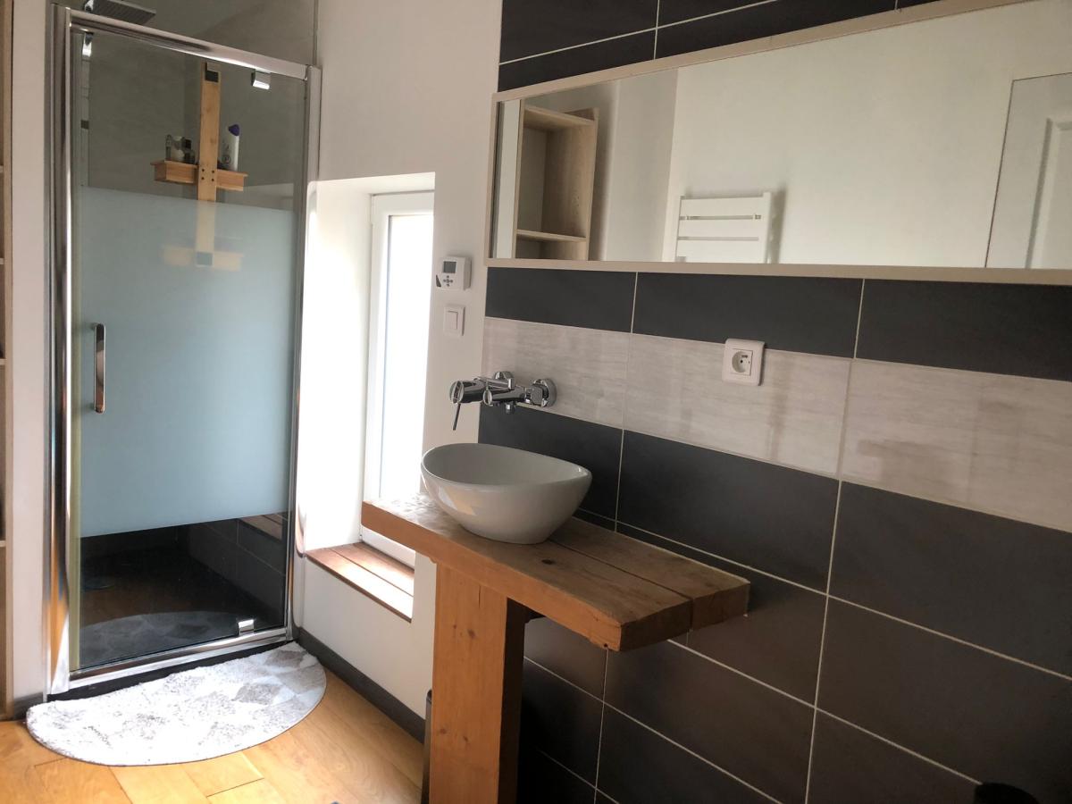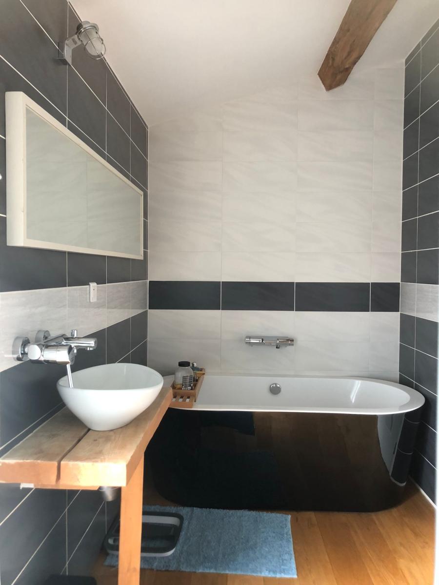 Un appartement duplex avec accès indépendant d’une surface habitable d’environ 72m² comprenant : Pièce de vie, cuisine équipée et salle de bains avec WC au rez-de-chaussée, un palier/coin bureau et deux chambres à l’étage dont une avec accès terrasse. Loué pour 710€HC/mois. (DPE C : 139/27)