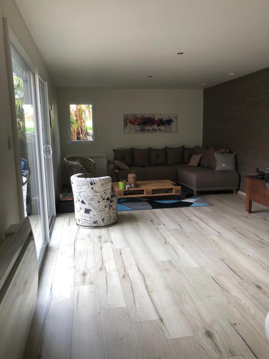 Au rez-de-chaussée : Entrée, dégagement, cuisine aménagée/équipée, pièce de vie ouverte sur sa terrasse, suite parentale avec salle d’eau attenante, WC séparés.