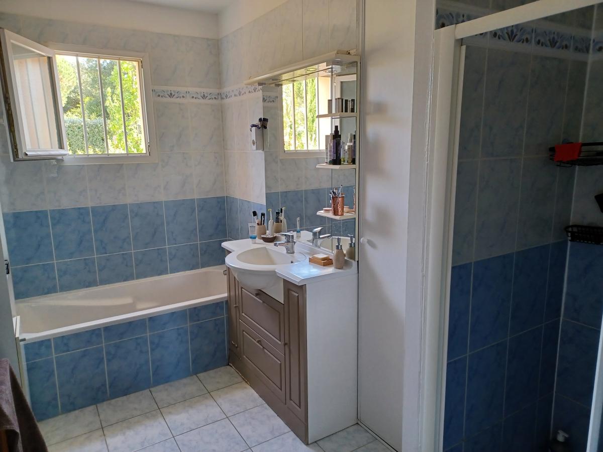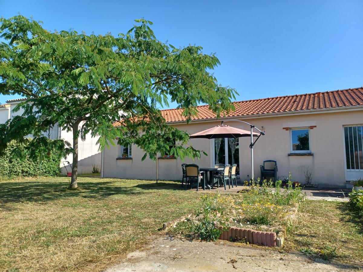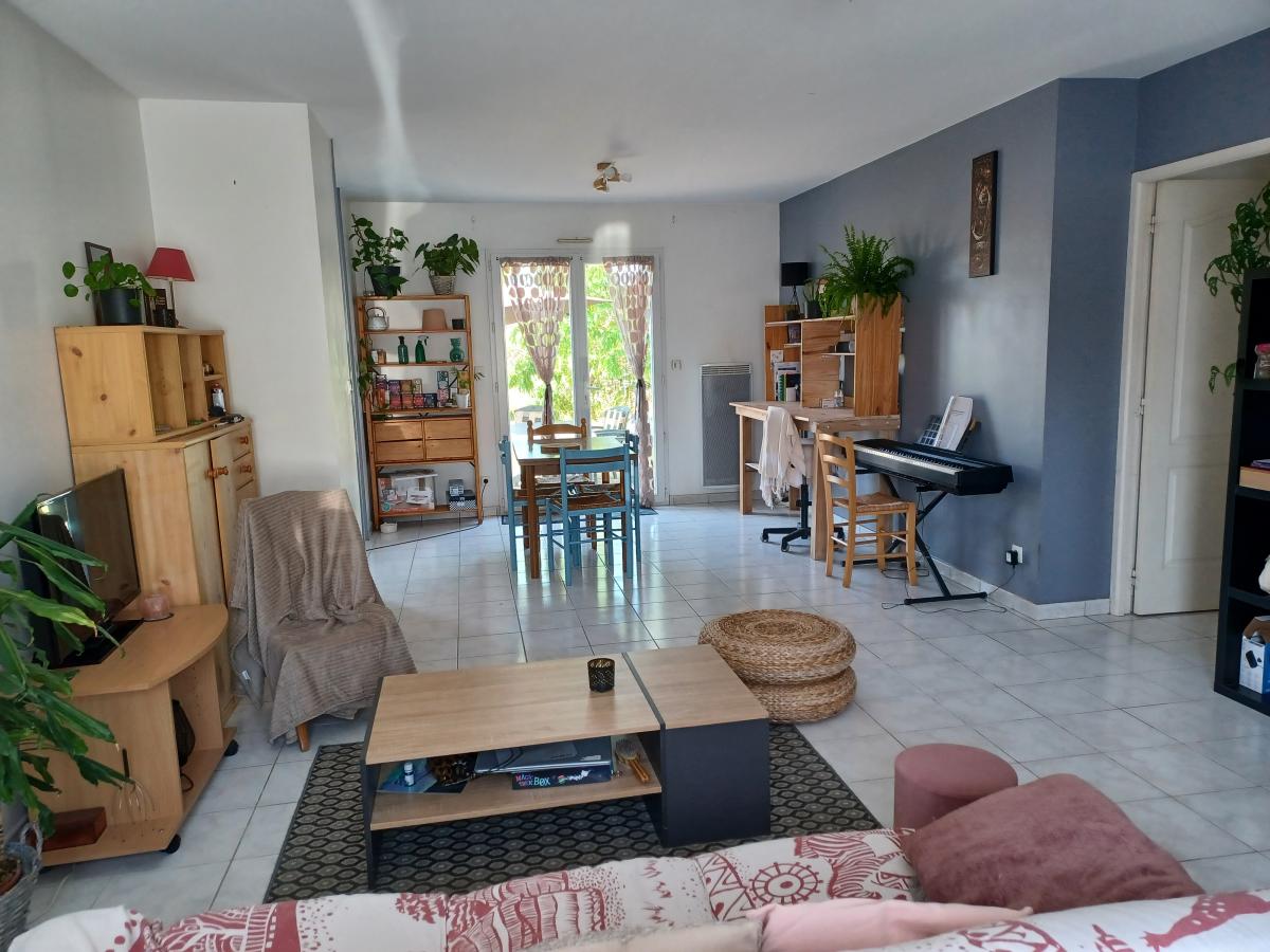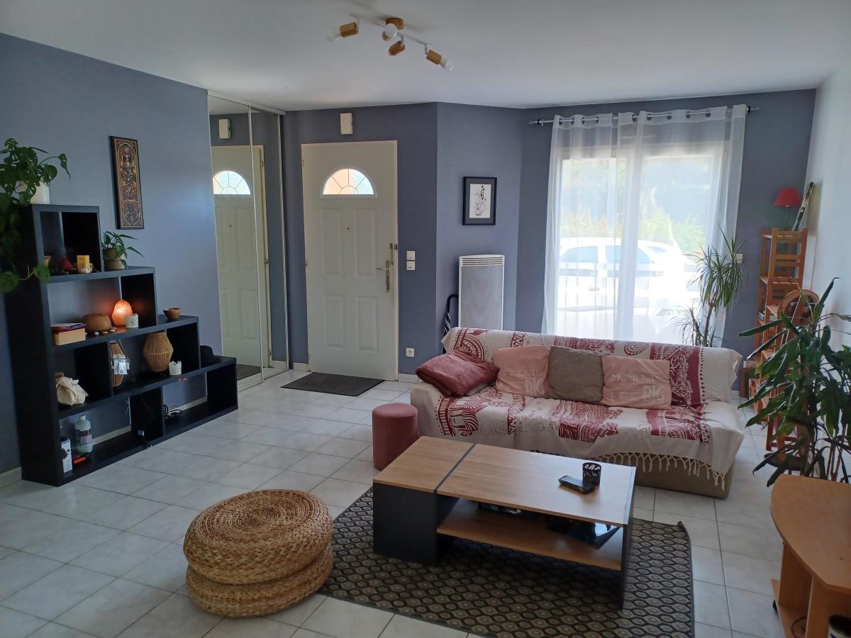 A pied de toutes les commodités: école, collège, sports, loisirs et commerces, maison de plain-pied de 90m² avec terrain de 504m² comprenant une pièce de vie traversante et lumineuse, une cuisine ouverte aménagée et équipée, trois chambres, une salle de bains (baignoire et douche), une lingerie et un garage avec faux-grenier. Jardin clôturé à l’arrière avec une terrasse exposée Sud-Ouest. Chauffage électrique et ouvertures PVC/DV. Maison raccordée à la fibre, peintures récentes.