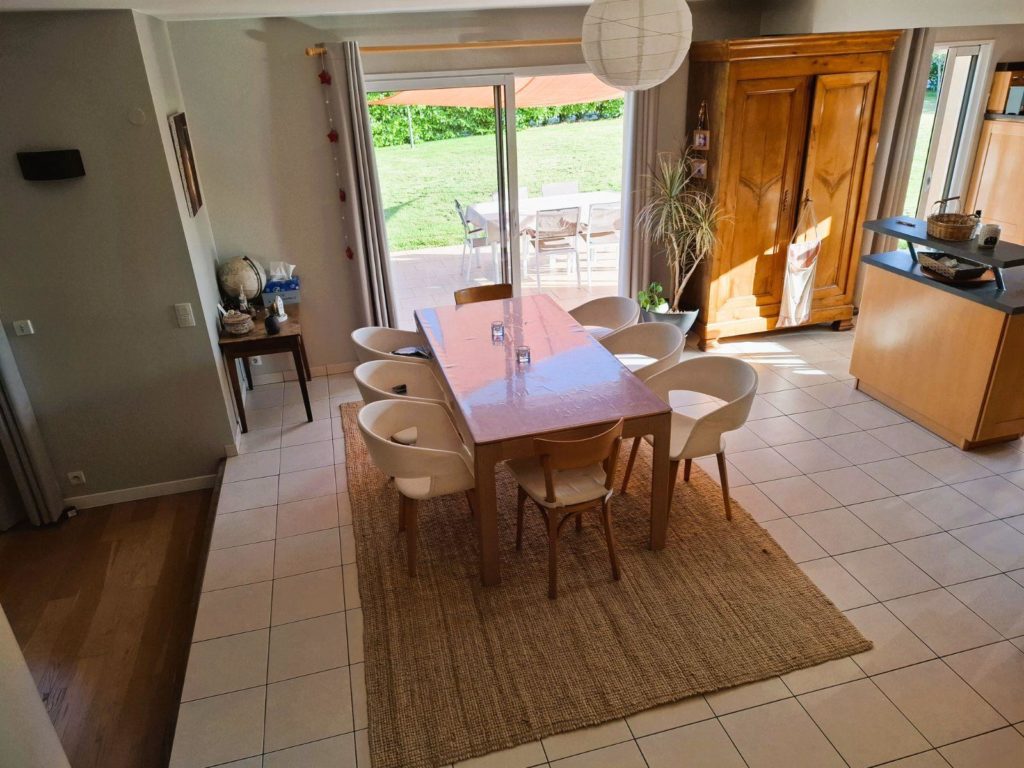 Terrasse exposée sud, grand garage, grenier. Chauffage géothermie. Cuve de récupération d’eau de pluie. Le tout sur terrain de 1000m².