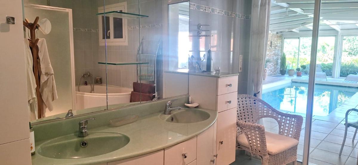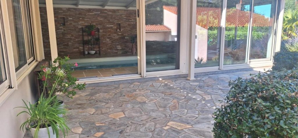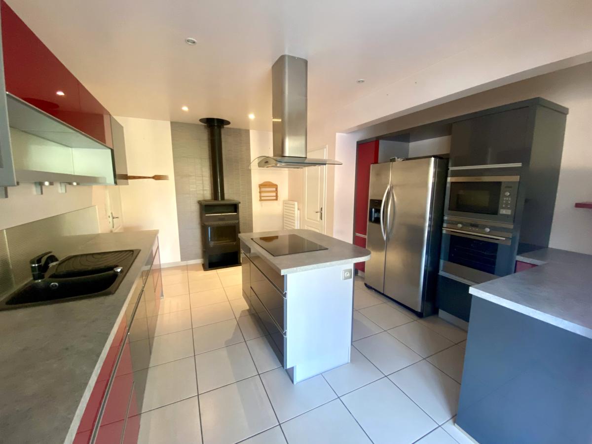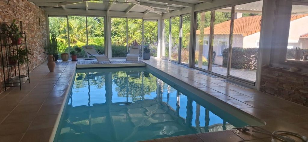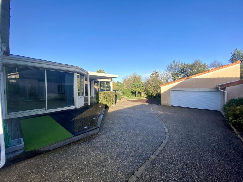 Dans le centre de Monnières, au calme à 15 minutes de la métropole nantaise et 5 minutes de la gare du Pallet. Belle propriété de plain pied rénovée en 2008 et 2013 d’une surface de 235 m² sur une parcelle de plus de 1300 m² comprenant un hall d’entrée, un salon / séjour avec plafond cathédrale, une cuisine aménagée et équipée avec poêle à bois, une chambre parentale avec dressing donnant accès sur une salle d’eau équipée d’un sauna neuf, une salle de bains avec douche et baignoire, deux chambres, 3 WC, une lingerie et une chambre supplémentaire à l’étage. Une piscine d’intérieur chauffée d’une dimension de 8 m par 3 m avec massage et nage à contre courant et une véranda chauffée complètent cette maison de prestations qualitatives. A l’extérieur, vous trouverez un jardin aménagé et paysagé avec terrasse et pergola bioclimatique et un garage de plus de 70 m2 avec atelier. A visiter sans tarder !