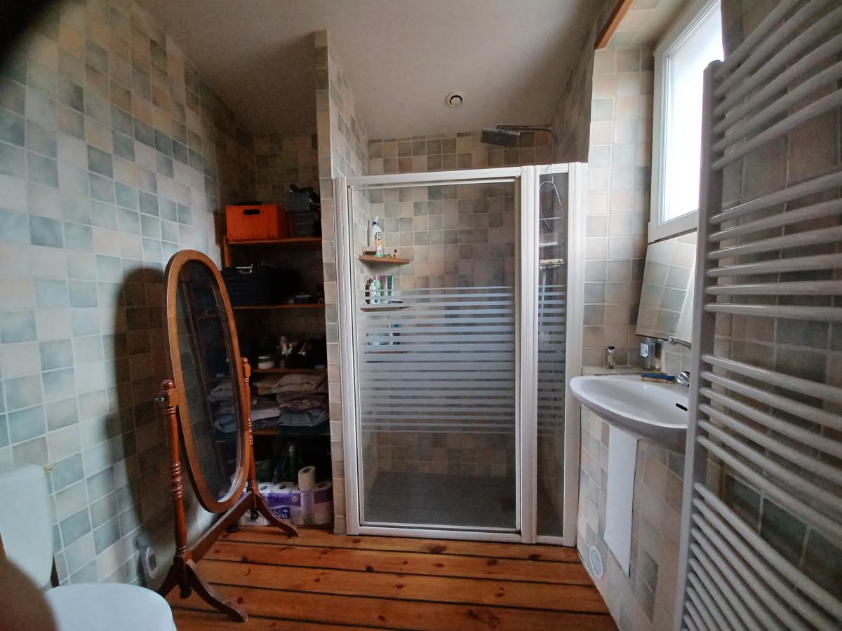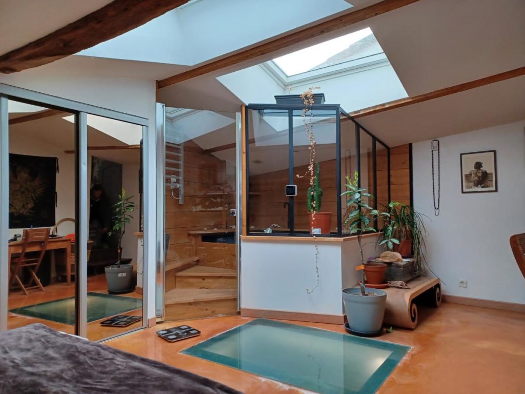 Coté Trinité, avec toutes les commodités à proximité (gare à 1,5km, école primaire à 300m, commerces), maison ancienne rénovée en 2002, de 103m² comprenant un séjour de 37m² avec un poêle à bois, une cuisine aménagée et équipée de 22m² et une lingerie plus à l’étage: deux chambres avec placard avec belle hauteur sous plafond, une salle d’eau avec wc et une troisième chambre atypique avec un espace jacuzzi. Pas de jardin, ni de stationnement. Chauffage électrique (consommation d’environ 100 € / mois), ouvertures en bois/alu, raccordée à la fibre, assainissement aux normes.