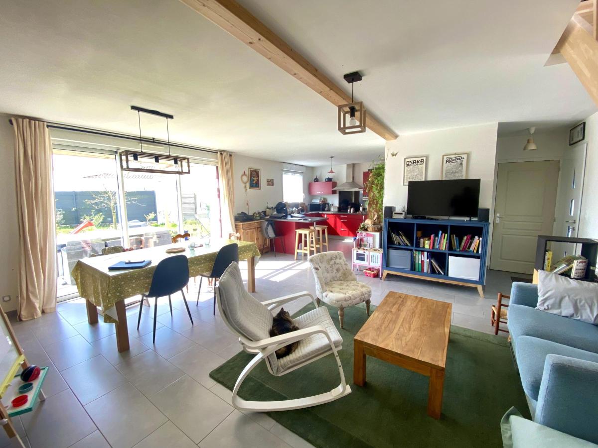 *EXCLUSIVITE* Dans le centre de GETIGNE, au calme et proche des commodités, jolie maison à étage de 2012 comprenant au rez-de-chaussée : un hall d’entrée, un salon / séjour avec cuisine ouverte aménagée et équipée, un WC, un cellier et un garage. A l’étage : un dégagement, un WC, une salle d’eau et trois chambres. Pompe à chaleur réversible air/air pour la pièce de vie installée en 2025. Isolation extérieure en fibre de bois sur l’ensemble de la maison posée en 2023.