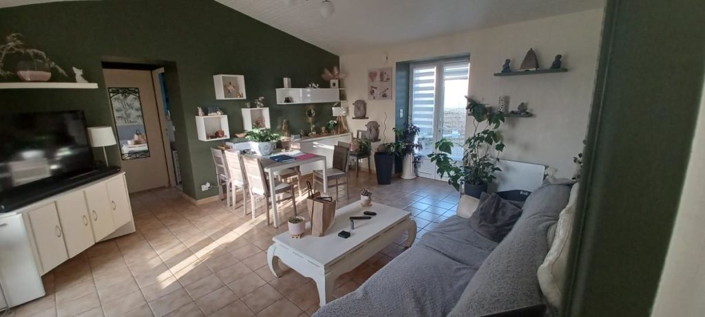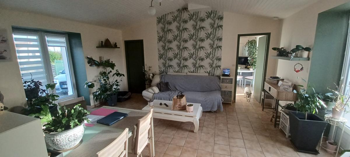 Ensemble immobilier situé en village, entre LE LOROUX BOTTEREAU et LA CHAPELLE HEULIN, composé de deux maisons d’habitation mitoyennes avec jardin. Une première maison de plain-pied sous bail locatif de type T3, de 64,18m² comprenant un salon-séjour, une cuisine, deux chambres, une salle de bains, un bureau, un cellier et un garage (chauffage électrique, DPE E 302/12), loyer actuel de 798 €. Une seconde maison, libre à ce jour: pour habitation principale ou locatif, de 56,30m², composée au rez-de-chaussée d’un salon-séjour, une cuisine et une buanderie puis une chambre et une salle d’eau avec wc à l’étage, avec un atelier attenant pour rangement (chauffage électrique, DPE D 188/7), le loyer était de 773 €.