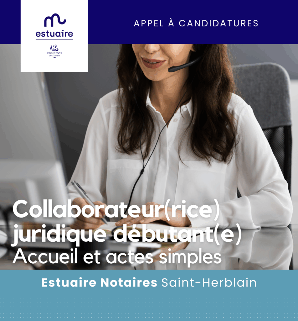 Besoin de + d’informations : recrutement@estuaire.notaires.fr